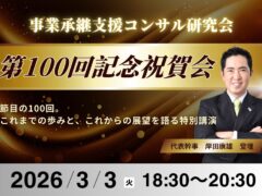 このたび、事業承継支援コンサルティング研究会は第100回の節目を迎えることとなりました。これまで長きにわたり、ご参加いただいた皆さまのご支援とご協力に、心より感謝申し上げます。今回の記念回では、代表幹事である岸田康雄が講 […]