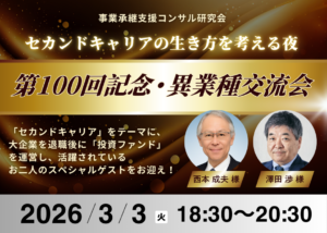 事業承継支援コンサル研究会(第100回)「縮小型事業承継®」のご紹介~事業承継成功率は100%。縮小型事業承継で停滞していた事業承継・M&Aが前進~ 2026年2月3日(火)@京橋区民館と楽しい懇親会&@Zoom